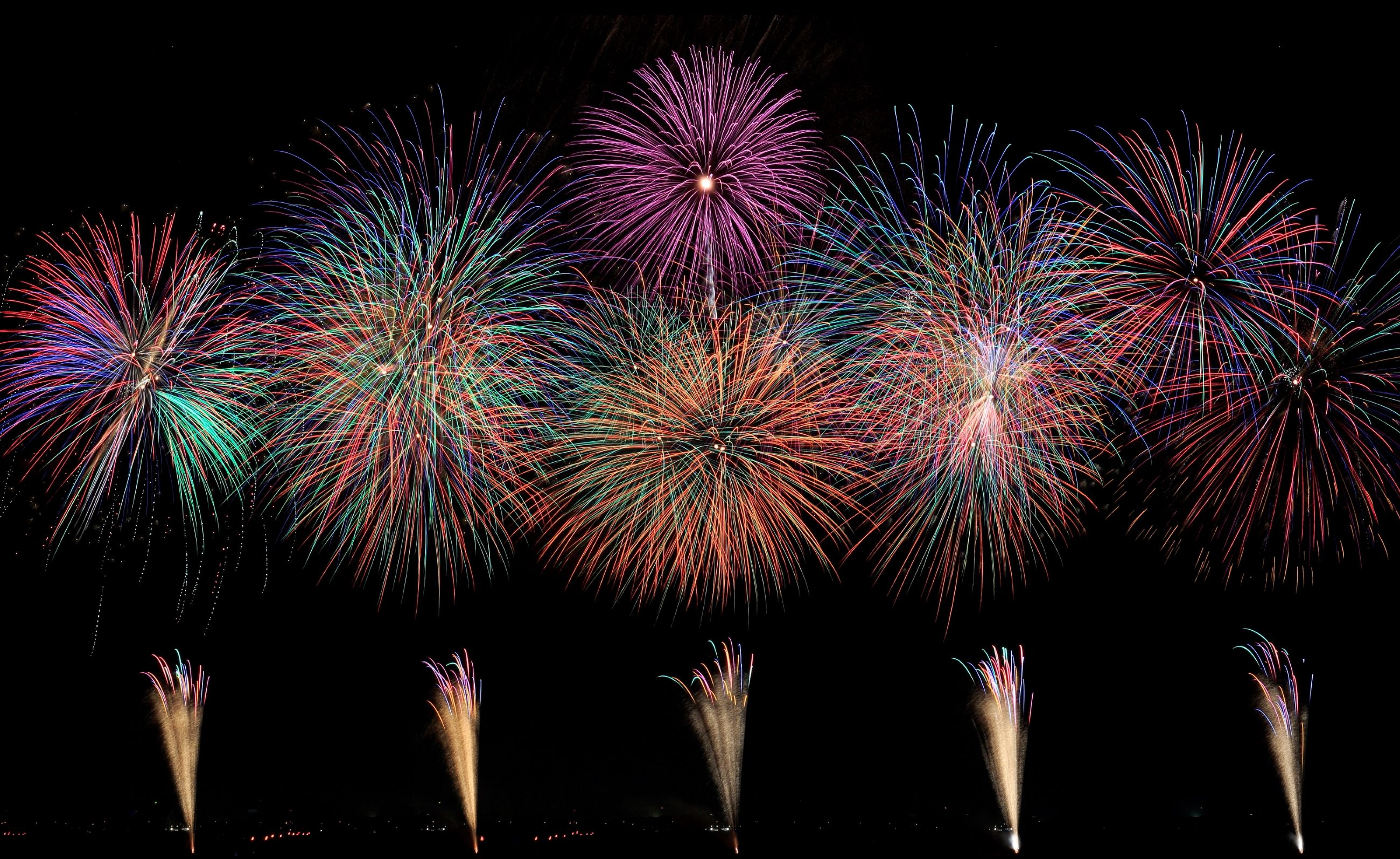 戦後の復興を願って、清水港の開港記念日である8月4日に合わせて、毎年大1週の週末、金曜日から日曜日に開催されています。3日間にわたってさまざまな行事が行われ、中でも特に盛り上がるのが「港かっぽれ総おどり」と「海上花火大会」です。 「港かっぽれ総踊り」は、当日飛び入り参加も可能で、総勢2万人ともいわれる老若男女が踊りを楽しみます。 「海上花火大会」では、1万発を超える花火がわずか60分で打ち上げられ夏の夜空を彩ります。光の花が清水港の水面にも映え、海上花火ならではの迫力を楽しむことができます。