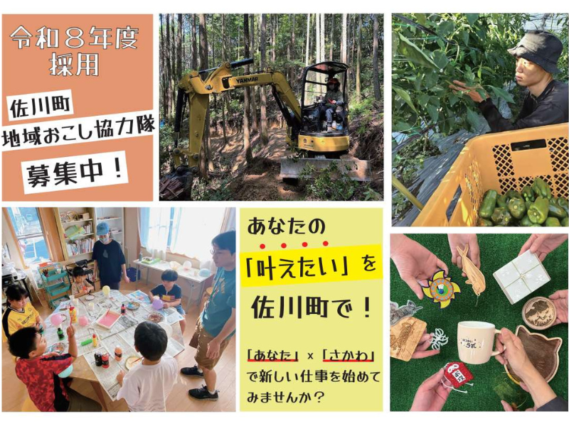 【ひとことで言うとこんな仕事】 本町では、少子高齢化の進行や人口減少とともに、地域コミュニティ及び一次産業の担い手不足が深刻な問題になりつつあります。そのため、地域外の人材を積極的に受け入れ、地域活性化に繋がる新たな発見や地域コミュニティの担い手として、また、新たな産業の創出等の取り組みを実践するため「地域おこし協力隊」の隊員を募集します。 【ミッション】 (1) さかわ発明ラボスタッフ (2) 自伐型林業の普及と実践 (3) 有機農業の普及と実践 (4) 佐川いちごの栽培 (5) ニラの栽培 (6) 放課後児童健全育成事業 【ここがポイント!】 ■住まいのサポート ・住居を貸与(町指定)、または家賃、駐車場補助あり! ・単身者の場合は家賃上限40,000円、駐車賃上限5,000円(1台分に限る。) ・同居者のいる場合は家賃上限50,000円、駐車賃10,000円(2台分に限る。) 気になる勤務条件・待遇等は、高知県移住ポータルサイト「高知家で暮らす。」に掲載中! 詳しくは、「詳細はこちら」のURLからご確認ください。