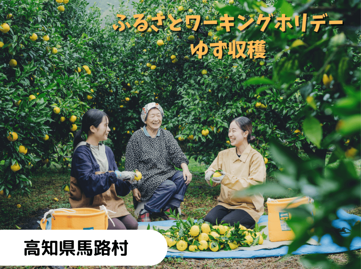 【高知県 馬路村(うまじむら)について】 馬路村は、豊かな自然環境と資源を活かし、林業やゆず栽培等の産業を通じて発展してきました。 山間地にある小さな村ですが、独自の強みを活かし、すべての村民が自分らしく幸せに暮らし、村を次世代につないでいくため、村の将来像を「ひと笑い、やま潤い、むら賑わう、未来につなぐ馬路村」と定め、村一丸となって取り組みを進めています。 【参加希望者へのメッセージ】 柚子収穫の繁忙期である11月に、参加者を募集します。参加者には一定期間村に滞在して柚子収穫等の作業に従事していただきます。 参加者は柚子収穫や村での生活を体験することができ、村内農家は収穫時期の人手不足の解消につながる事業となっています。 【受入(雇用)形態/予定期間】 (第1期)令和7年11月4日(火)~ (第2期)令和7年11月10日(月)~ 2週間以上(応相談。長めの滞在がありがたいです) 【主な業務内容 】 柚子の収穫、剪定、出荷(小雨でも作業あり) ※農協集荷場等での作業等、農家以外での就労もあり。 ※高枝切ばさみや脚立を使用した作業有 【応募していただきたい方】 ・年齢が満18歳から満50歳程度(令和7年10月1日現在) ・健康で、屋外の作業を継続して行えること ・柚子の収穫や馬路村での暮らしに興味があること ※お試し住宅に無料で宿泊できます ※移住をお考えの方には移住相談・案内を随時受け付けております。 ※柚子収穫以外にも馬路村を体験してもらうため、間伐体験やゆず絞り体験などを実施予定です。