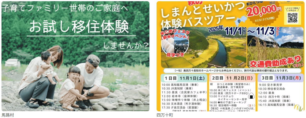 高知県には、各市町村が工夫を凝らした“ちょっと面白い”移住支援があります。金銭的な補助だけでなく、仕事・住まい・人とのつながりまでサポートしてくれるのが魅力です。ここでは特に注目したい事例をピックアップしました。 ■仕事・起業を応援 【大川村】地域おこし協力隊インキュベーションプログラム ただの協力隊ではなく、起業やゲストハウス運営をテーマに、専門家が伴走する特別プログラム。「地域で挑戦してみたい」という方にぴったりです。 ■まずはお試し移住 【馬路村】お試し移住体験(交通費最大20万円補助) 家賃ゼロ・保育料ゼロ・仕事紹介付き、さらに交通費も最大20万円まで補助。全国トップレベルの手厚さです。 【四万十町】しまんとせいかつ体験バスツアー 四万十川アクティビティ、地域案内、空き家見学、移住相談を2泊3日で体験できるパッケージツアー。観光気分で気軽に参加できます。 ■若者・子育て世帯にうれしい 【中土佐町】奨学金返還支援(最大180万円) 町に10年以上住めば最大120万円を助成。町外勤務でもOKなので、進学や就職で一度出た方のUターンにもおすすめです。さらに町内勤務の方は上乗せあり!最大180万円の助成を受けられます。 【須崎市】シングルマザー支援拠点「りあん」 シングルマザーや子育て世帯が安心して過ごせる居場所を提供。交流イベントや相談サポートもあり、孤立せずに移住できます。 ■出会いもサポート 【日高村】婚活アプリ入会費助成 婚活マッチングアプリの入会費を助成。「地方で出会いが欲しい」という方を応援します。 いかがでしたか?ここでご紹介したのはほんの一部です。 まずは気になる市町村をチェックしてみましょう! 「詳しくはこちら」のURLをクリック!