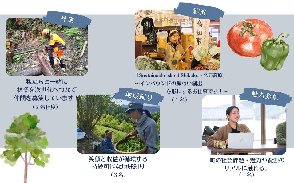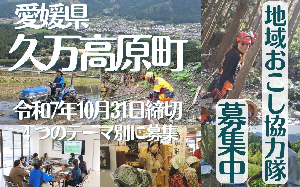 魅力あふれる町を持続させ、豊富な資源を活用してさらなる地域活性化を目指してくれる地域おこし協力隊を募集します! 締め切りは令和7年10月31日(金) ~4つのテーマ別に募集中~ 🌳林業 私たちと一緒に林業を次世代へつなぐ仲間を募集しています。 (2名程度) 🏡地域創り 笑顔と収益が循環する持続可能な地域創り (3名) ✨観光 「Sustainable Island Shikoku・久万高原」~インバウンドの賑わい創出を形にするお仕事です!~ (1名) 💓魅力発信 町の社会課題・魅力や資源のリアルに触れる。 (1名) 応募方法やテーマの詳細等はホームページにてご確認ください。 ご応募お待ちしております。