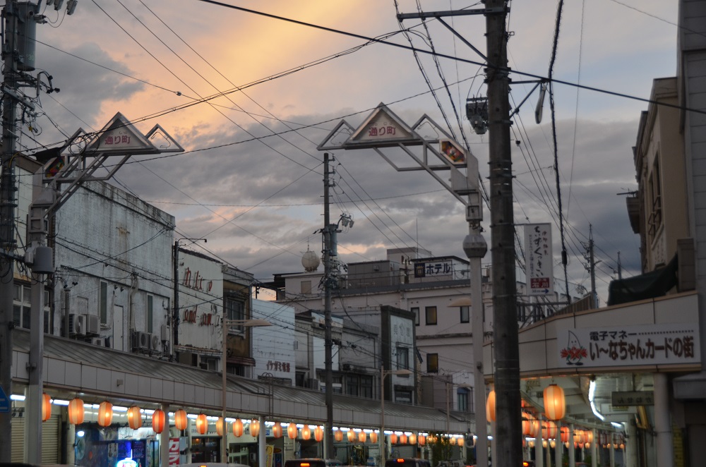 長野県伊那市の中心市街地にあり、昭和時代の看板建築が残るレトロな雰囲気の「通り町商店街」。