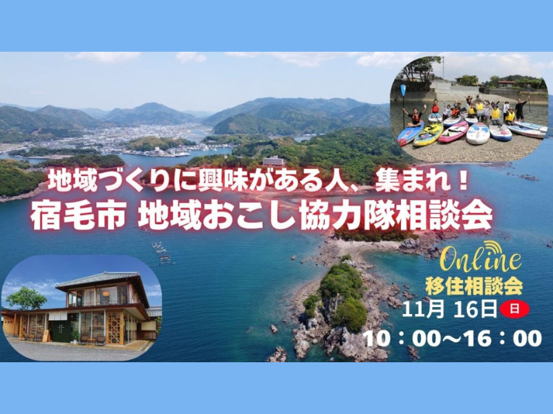 高知県の西南端、温暖な気候と美しい海に囲まれた町――それが宿毛市(すくもし)です。 人口はおよそ18,000人。豊かな自然に恵まれ、眼前に広がる宿毛湾や、足摺宇和海国立公園に属する島々、また市全域の84%が森林地帯という数字が物語る緑鮮やかな山並みが織りなす風景は、訪れた人の心をほっと和ませてくれます。 「海も山も、どっちも欲しい」そんな願いが叶うこのまちには、自然とともに暮らす豊かさがあります。 一方で、宿毛市には現在、人口減少や高齢化、地域産業の担い手不足など、まちの未来に向けた課題も存在します。 だからこそ今、宿毛市では地域づくりの担い手を積極的に求めています。 特に、空き店舗の活用、離島振興、第1次産業などといった分野で、「地域の未来を一緒に考えてくれる人」「地域の中に入って、動いてくれる人」の存在が必要です。 都市部での経験を活かしながら、地域と深く関わる暮らしをしてみたい。そんな方にとって、宿毛市はチャレンジと出会いにあふれた場所です。 海風を感じながら、地域と共に歩む日々。 宿毛市での暮らしと仕事に、あなたも一歩踏み出してみませんか? 今回は、地域と深くかかわるパイオニアとしての「地域おこし協力隊」のミッション紹介とあわせて、 ・海の近くでくらしたい ・自分の夢を宿毛市でかなえたい ・自然に恵まれた場所で自分らしく暮らしたい といった、移住に様々な想いを巡らせている方向けに、オンラインで個別相談会を実施します。 下記「地域おこし協力隊」のご案内をはじめ、宿毛暮らしの気になる事をじっくり聞けるチャンスです。 宿毛市で始まるかもしれないあなたの新たな「人生の扉」をそっと開く機会にしませんか?