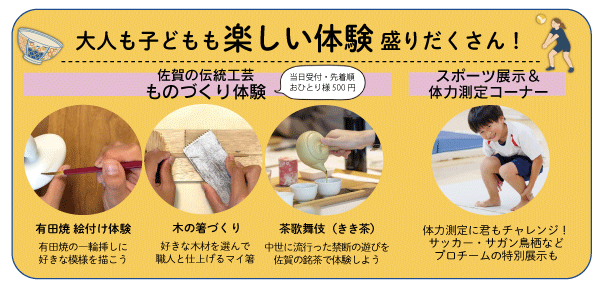 佐賀県内のたくさんの企業・団体・市町が一堂に会するイベントを今年も東京で開催します。 佐賀暮らし・地方での移住や仕事・子育て環境などが気になる人におすすめ! ものづくり体験やトーク&クイズ大会、スポーツ体験や個別相談ブースなど 佐賀の「めっちゃいい人・もの・こと」が盛りだくさんの移住フェアを開催します。 ーーーーー 佐賀県 暮らし&しごと体感フェア ーーーーー ■日時: 2025年12月13日(土)11:00~16:00 ■場所: 東京交通会館12階ダイヤモンドホール (東京都千代田区有楽町2丁目10-1) ■参加費:無料! ※事前申込&当日来場で、 佐賀のいいものをプレゼント!(先着順) ▶詳細はこちら https://www.sagasmile.com/sagataikanfair2025/
