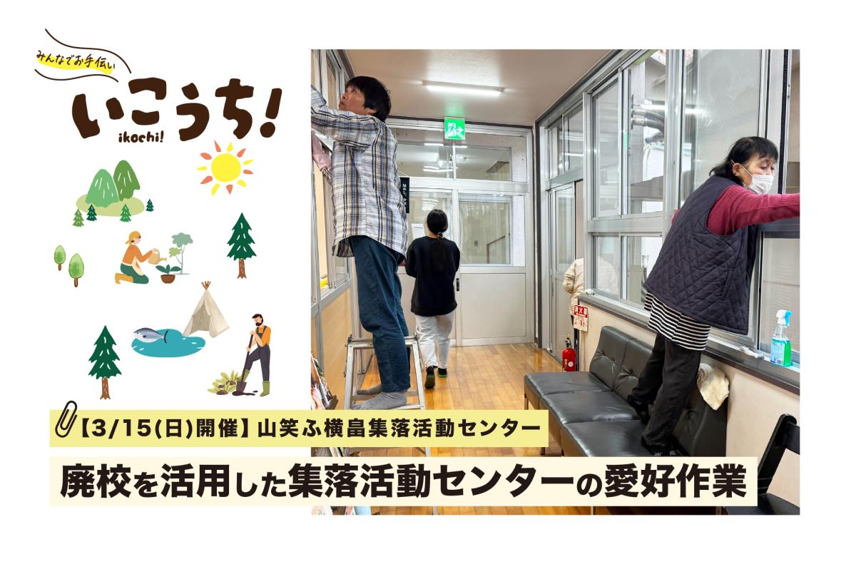 開催日時: 2026年3月15日(日)8:30〜13:00 ※12:00〜校内でみんなでお弁当を食べます! 開催エリア:越知町 主 催 者 : 山笑ふ横畠集落活動センター 対 象: 地域づくりや廃校活用に興味のある方 清掃や環境整備などの作業に参加できる方 スタッフや地域住民の指示に従って安全に活動できる方 応募締切: 2026年2月28日(土)17:00まで 「山笑ふ横畠集落活動センター」は、高知県越知町にある、廃校となった旧横畠小学校をリノベーションして生まれた、宿泊もできる地域の交流・活動拠点です。地域にとって大切な場所を未来へ残していくため、日頃から「愛校作業」を行っています。 今回のプログラムでは、校舎内外の清掃や簡単な環境整備作業を地域住民と一緒に行っていただきます。特別な技術や経験は必要なく、どなたでも気軽に参加できます。 作業を通して、地域の方々との交流を楽しみながら、廃校活用の現場や、地域に根ざした取り組みを体感していただけるプログラムです。