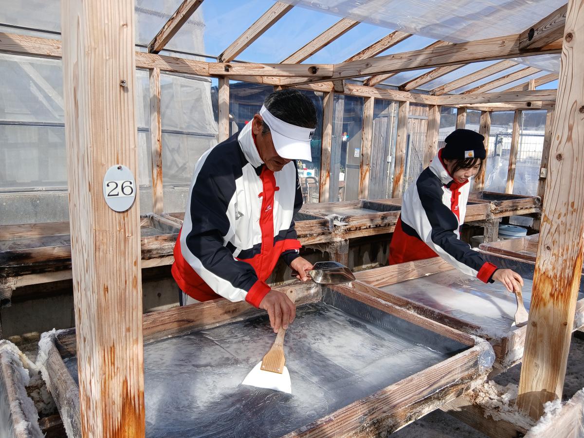 完全天日塩作りにチャレンジされている福井さんご夫妻。田野町での暮らしや塩作りに込めた想いをお聞きしました。 福井信也さん(写真左) 福井茜さん(写真右) 出身地:兵庫県 現住所:田野町 移住年:2024年 職業:地域おこし協力隊 Q.田野町へ移住したきっかけを教えてください。 ー(茜さん)全国の都道府県が集まる移住フェアへ参加した時に、帰り際でたまたま声をかけられたのが高知県のブースでした。塩職人の田野屋塩二郎さんが田野町で活動されていることや、塩職人を目指す地域おこし協力隊の募集があることを知り、興味を持ったのがきっかけです。 塩二郎さんのことは以前にテレビで紹介されているのを見たことがあったんです。「あの塩二郎さんの下で学べるなら、こんなチャンスは無い」と思いました。 ー(信也さん)旅行先で道の駅にふらっと立ち寄ると、地元でしか手に入らない手作りの塩が売ってたりするじゃないですか。そんな体験もあって、以前から塩に親しみを感じていたんです。 一方で、移住前は埼玉県に住みながら、東京まで電車で1時間半かけて毎日出社していました。長時間の通勤や生活環境の騒音がストレスで「疲れた、移住したい」と妻にぽろっと話したところ、思いのほか賛成してくれたんです。人がいない静かなところに行きたいという思いもあり、田野町への移住を決めました。 Q.日々の仕事内容を教えてください。 ー(茜さん)「完全天日塩製塩体験施設」の運営管理と自分達の塩作り、この2つの軸で活動しています。地域おこし協力隊になって2年目からは、研修棟の3棟を任せてもらい、ゼロから塩作りを学んでいます。 ー(信也さん)木箱1箱で約3kgの塩ができあがるんですが、その日の気候や気温、日の当たり方、かき混ぜたときにヘラに当たる海水の重さ、塩の粒の大きさを見て調整しています。 ただ、そういった物理的なことだけでなく、自分がネガティブな感情を持ったまま作業をしてしまうと塩に影響が出る気がしていて、日々ストレスフリーでいることを意識しています。 夫婦で作り方が全く違うのも、面白いんですよ。僕は頭で考えるタイプです。例えば、良い塩ができたら、再現するために3か月前の日報を見返して、作り始めた日の天気や作業内容を確認します。 ー(茜さん)私は感覚タイプです。頭で考えなくても、再現できてしまいます(笑)。 Q.移住前と移住後で、どのように暮らしが変化しましたか? ー(信也さん)塩作りは365日休みがない仕事ですが、僕にとってはストレスフリーで、まるで遊んでいておこづかいがもらえるような、天国みたいな…… --------------- 気になる続きは、高知県移住ポータルサイト「高知家で暮らす。」に掲載中です。 「詳細はこちら」のURLからぜひお読みください✨